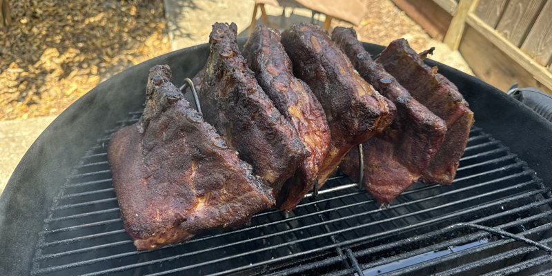 as well as 3 racks of ribs, and cooked 5 types of sausages, two different salads, and