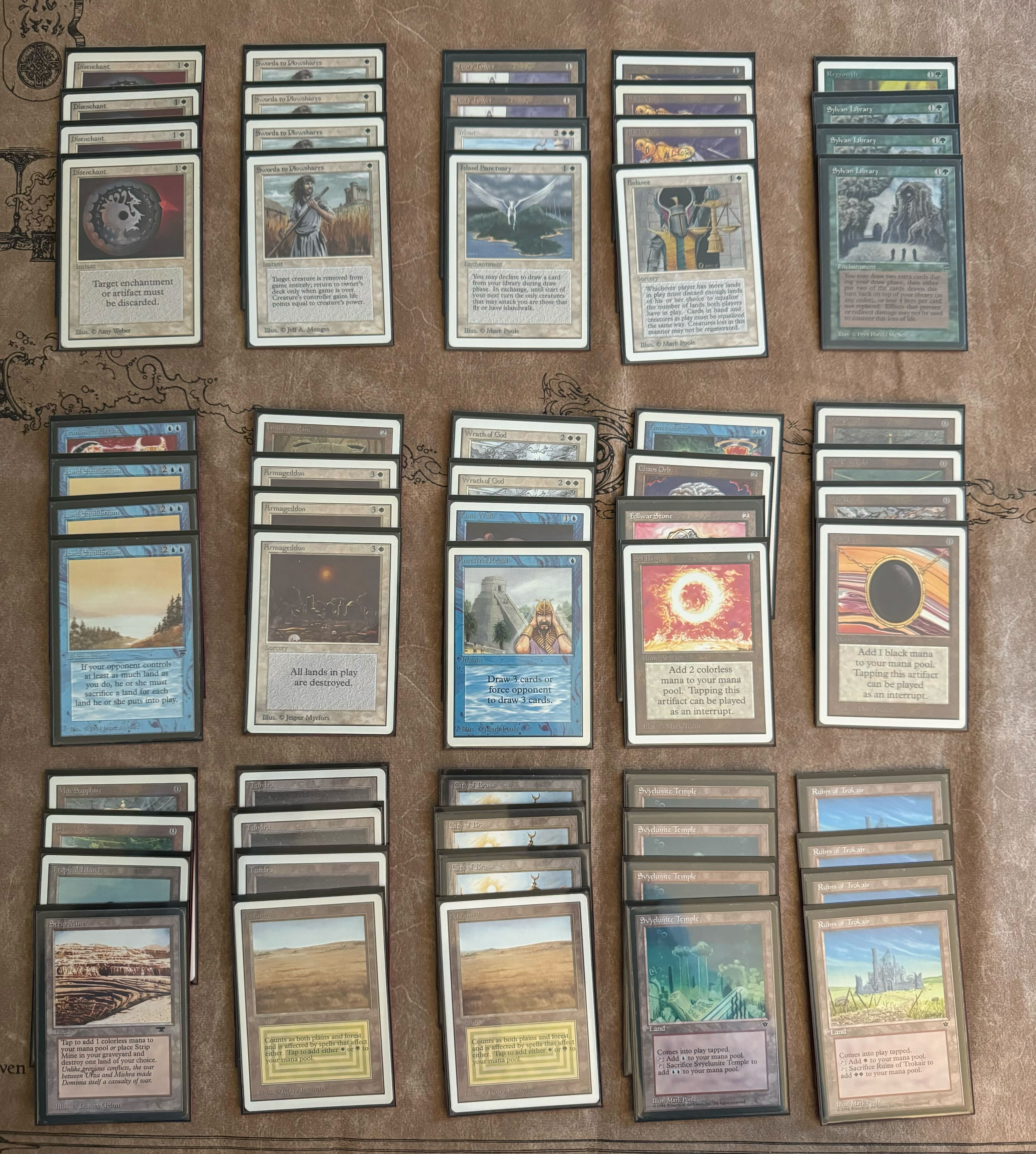 and Land Equilibrium. The deck featured 4x Ruins of Trokair, 4x Svyelunite Temple, and 4x
